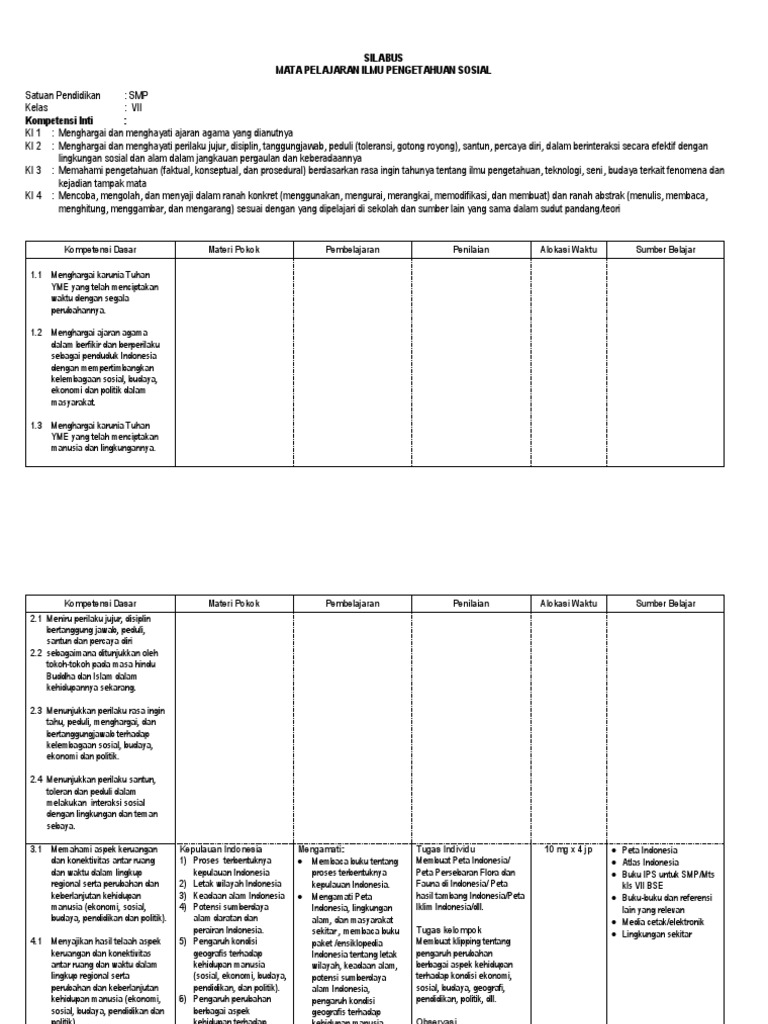 Silabus smp mts kurikulum 2013 revisi terbaru semua mapel (unduh). Silahkan anda download selengkapnya melalui link di bawah ini! Lampiran contoh silabus ips terpadu smp yang berpotensi dipadukan contoh silabus dan sistem penilaian ips terpadu satuan smp/mts ilmu pengetahuan sosial vii kegiatan ekonomi penduduk kompetensi dasar semester 2 6.1 mendeskripsikan pola kegiatan. Download 25 contoh judul beserta laporan penelitian tindakan kelas (ptk) ekonomi untuk sma dan ma. Menghargai dan menghayati ajaran agama yang dianutnya ki 2 :